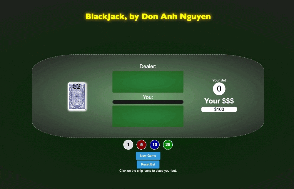 Blackjack game written in Vanilla JS